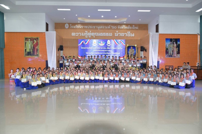วันที่ 26 กุมภาพันธ์ 2569 นางประกาทิพย์ ผาสุข ผู้อำนวยการโรงเรียนราชประชานุเคราะห์ 60 จังหวัดเชียงใหม่ พร้อมคณะผู้บริหาร ให้การต้อนรับ พลตรีอมรินทร์ เทศนธรรม รองเจ้ากรมกิจการพลเรือนทหาร ซึ่งให้เกียรติเป็นประธานในพิธีปิดโครงการ พร้อมด้วย นายอำเภอแม่ริม จังหวัดเชียงใหม่ นายกเทศมนตรีเมืองดอนแก้ว และหัวหน้าส่วนราชการในพื้นที่ เข้าร่วมพบปะและให้โอวาทแก่เยาวชนผู้เข้าร่วมโครงการอย่างอบอุ่น การกล่าวให้โอวาทในครั้งนี้ มุ่งเน้นการเสริมสร้างขวัญและกำลังใจ ตอกย้ำแนวทางการเป็นผู้นำที่ดี การมีวินัย ความรับผิดชอบ และการยึดมั่นในหลักคุณธรรมจริยธรรม ซึ่งเป็นรากฐานสำคัญของการพัฒนาเยาวชนให้เติบโตอย่างมีคุณภาพ ตลอดระยะเวลา 3 วัน 2 คืน กิจกรรมต่าง ๆ ได้หล่อหลอมเยาวชนให้ตระหนักถึงบทบาทของตนเอง รู้จักการเป็นทั้งผู้นำและผู้ตามที่ดี พร้อมนำประสบการณ์และแนวคิดที่ได้รับไปต่อยอดสู่การใช้ชีวิตจริงในอนาคตโครงการเครือข่ายเยาวชนฯ จึงนับเป็นอีกหนึ่งภารกิจสำคัญของ กองทัพไทย ในการร่วมพัฒนาทรัพยากรมนุษย์ เสริมสร้างเยาวชนให้เป็นกำลังสำคัญของชาติ ภายใต้แนวคิด “สร้างคน สร้างผู้นำ และสร้างสังคมที่เข้มแข็งอย่างยั่งยืน”