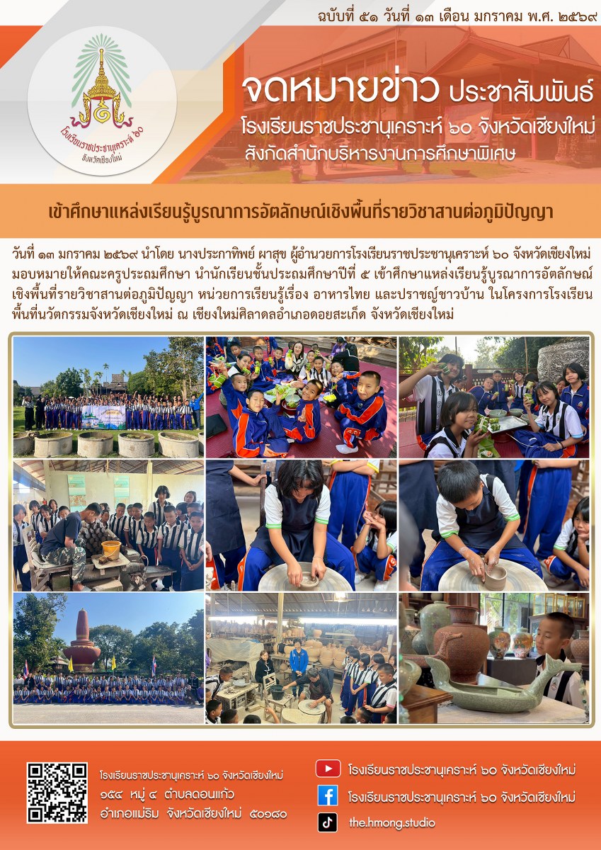 เข้าศึกษาแหล่งเรียนรู้บูรณาการอัตลักษณ์เชิงพื้นที่รายวิชาสานต่อภูมิปัญญา