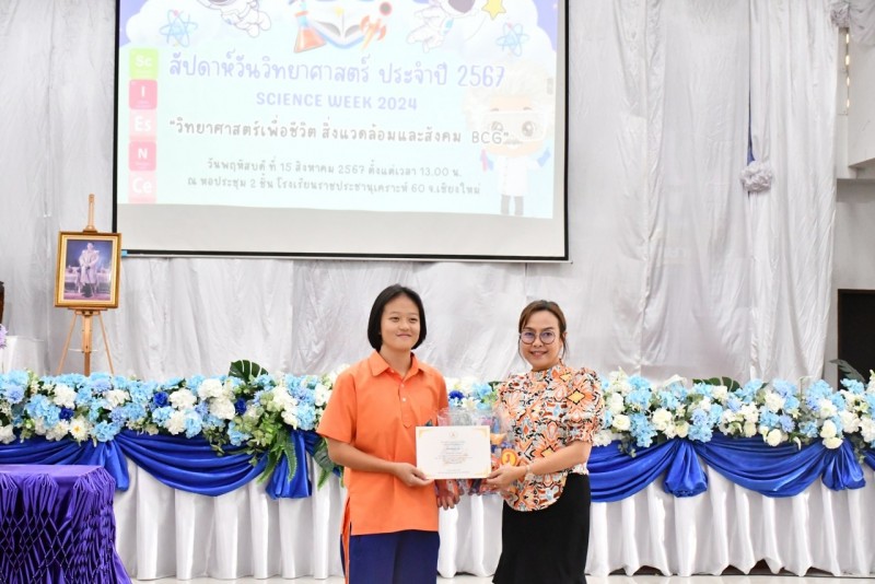 วันที่ 15 สิงหาคม 2567 นายอรุณไสว ปินอินต๊ะ รองผู้อำนวยการโรงเรียนราชประชานุเคราะห์ 60 จังหวัดเชียงใหม่ เป็นประธานในพิธีเปิด กิจกรรมสัปดาห์วันวิทยาศาสตร์ ประจำปี 2567 โดยมีวัตถุประสงค์ เพื่อเสริมสร้างบรรยากาศทางวิทยาศาสตร์และเทคโนโลยี ให้นักเรียนเห็นคุณค่าและความสำคัญของวิทยาศาสตร์ต่อการดำรงชีวิต ในการจัดกิจกรรมครั้งนี้ได้ดำเนินจัดกิจกรรมต่าง ๆ ได้แก่ 1) กิจกรรมการแข่งขันตอบปัญหาทางวิทยาศาสตร์ ประเภททีม ระดับชั้นมัธยมศึกษาตอนต้นและตอนปลาย 2) กิจกรรมการแข่งขันวาดภาพทางวิทยาศาสตร์ ระดับประถมศึกษา มัธยมศึกษาตอนต้นและตอนปลาย 3) กิจกรรมการแข่งขัน science fashion show 2024 และ 4) นิทรรศการฐานการเรียนรู้วิทยาศาสตร์และเทคโนโลยี ได้แก่
